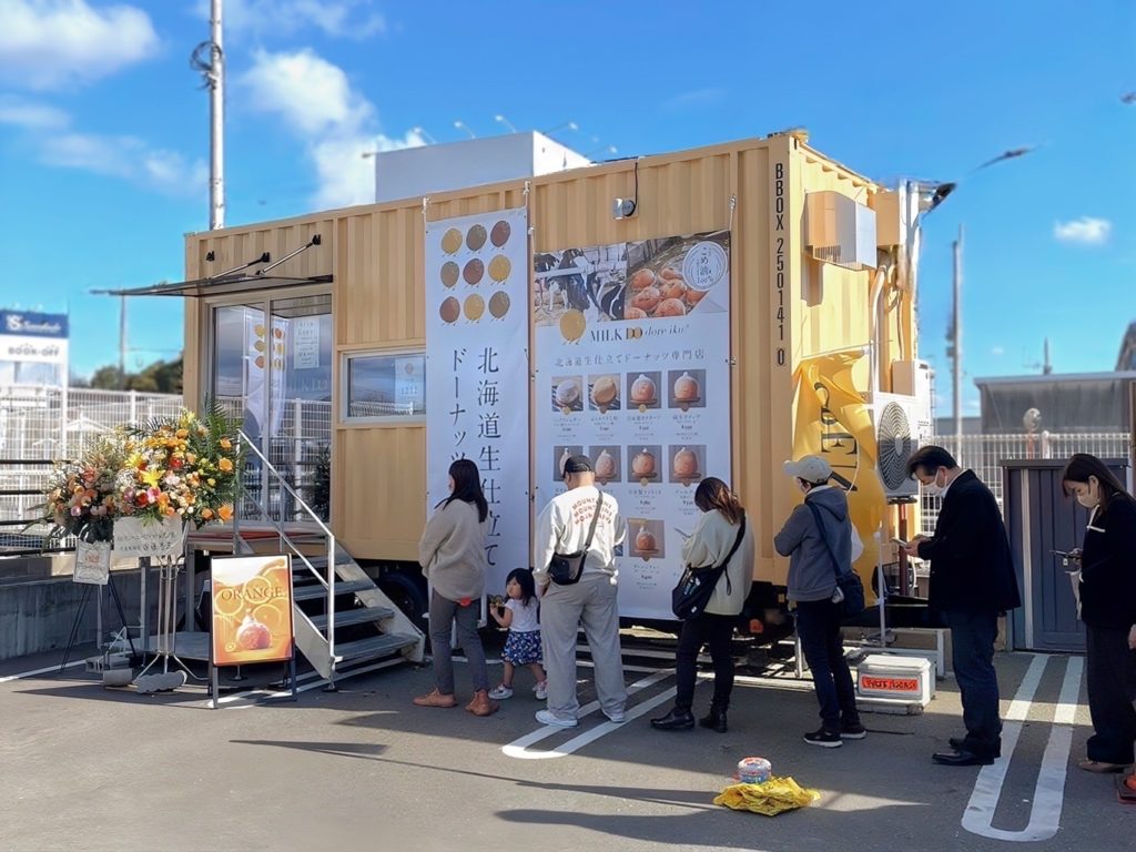 テナントは北海道でいま大人気の生ドーナツブランド「MILK DO dore iku?」でトレーラーハウス活用店舗としては、全国14店舗目の出店となります。